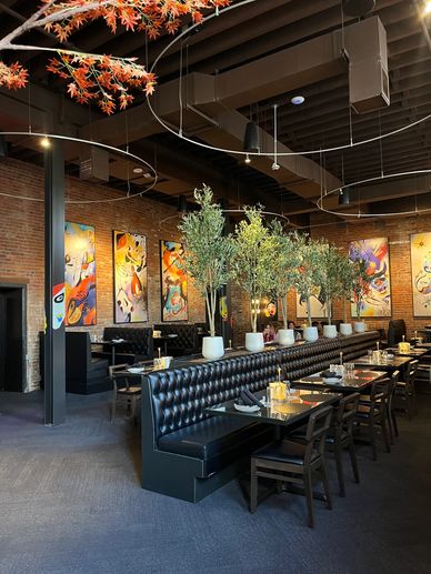 Enjoy the full a'la carte Miró Tapas experience in our elegant, yet comfortable gallery dining room. Here, deeply inviting booths and generously sized tables become the gathering spaces for memory-making. Sip on wines from our custom art cart, and get ready to wave down courses of savory tapas. Finish the evening with a decadent dessert!